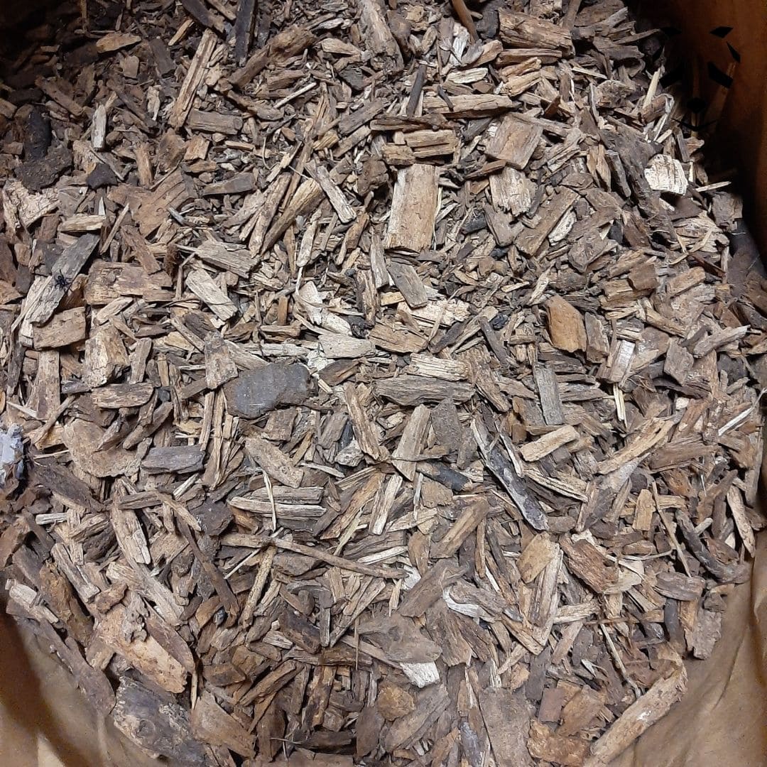 Este mantillo para bambú está compuesto principalmente de madera de hoja dura triturada.