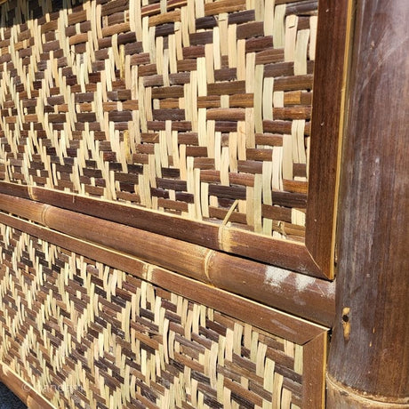 595,00€Precio unitario /AgotadoMuy poca disponibilidad (4 unidades)Tiki bar de bambú bicolor + 2 taburetes - Envío GRATIS