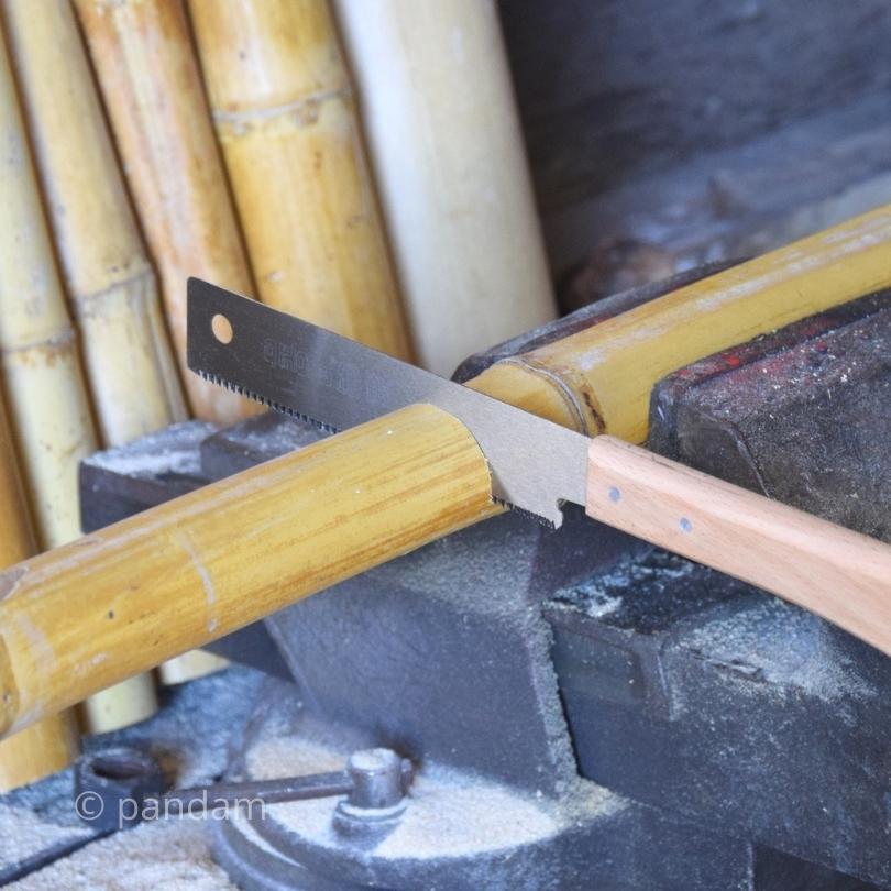 Esta pequeña sierra es ideal para cortar secciones de bambú seco de 1 cm a 8 cm de diámetro. También se puede utilizar para cortar bambú verde. El bambú es un material con fibras largas en sentido longitudinal. Si utiliza una sierra con dientes grandes o alternos, corre el riesgo de desgarrar las fibras. Con esta pequeña sierra japonesa, con sus dientes pequeños, numerosos y alineados, obtendrá un corte muy limpio y perfecto.